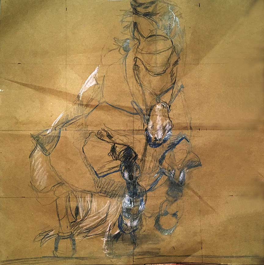 I put a grid over the drawing to help me enlarge the sketch to a 40 x 40 inch mounted canvas.